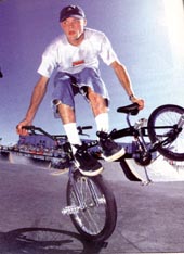 | Chris Hargrave, Ride BMX US october 1997: The street course was the coolest one I'd seen at an ESPN comp thus far. Lots of different lines possible, lots of variety and lots of ramps covered with rainbows and such. All of this, with the beach right there in the background. Scenic. Just the type of thing the folks at home want to see. A real Californian Utopia. Once the stands were good and packed and the cable cam secured in place, it was time for street finals. The crowd roared, and the one's who couldn't see, actually sat in the vert stands and watched things on a giant TV monitor. It was really crazy. In tenth place was Paul Buchanan. Paul's an amazing rider, and it was good to see him do well in such a hard class. In one of his runs, Paul went for a transfer over a rail and sacked his nuts harder than I've ever seen anyone do. To top it, he got straight up, and pulled a perfect 360 tailwhip. Those Canadians are a different breed, I tell ya. Ninth place went to Dave Freimuth. Dave looked like he still wasn't really used to his new bike, but rode great nonetheless. 360 tailwhips, alley-oop tailwhips over hips, disasters on the vert wall and all sorts of techno tricks gave Dave his usual flow. When he gets dialed on his new ride, things should be a little different. Dave Osato found himself in eighth, and rode the back-to-back spines like only Dave can. Dave gets best of show for doing a 360 nosepick over the first spine and an opposite 360 nosepick over the next. Indeed. Seventh went to Ron Kimler, who seemed quite happy on his new Schwinn. Ron had big smooth lines, and used the X-up to his full advantage. That boy's got a flow that makes Big Island yell "Yo, mad phat!" every single time. Sixth place went to my favorite guy to watch on the course, Mike "Rooftop" Escamilla. Mike gets a lot of flack for not jumping the box jump, but keep in mind... This is a STREET contest. True street lines are greatly appreciated, and besides, if all you want to do is jump, enter dirt. Enough said. Mike had a few rough spots in his finals runs, but with tricks like doing the huge rail backwards, rail transfers and lines not seen from anyone else all weekend long, he deserved to place well. Fifth place was all Ryan Nyquist. Ryan rode really well, and now is doing this thing where he does a half-barspin, and then does his crazy lines with his bars backwards. Ryan's really smooth and can jump well, but never really seems to utilize the whole course, except the jumps. If he gets more variety, he should be pretty darn hard to stop. Rob Nolli was the man in fourth. Ron rode with the consistent style you're used to seeing from him. 720s, flips, tailwhips, supermen... The whole shabang. I'm sure somewhere Woody was ecstatic. Now with Dave Voelker's third place finish, there seemed to be quite a bit of controversy... But don't worry, I was there and can let you know just what the judges were thinking. OK, so here goes... Now, the crowd loves the backflips. Man, do they love backflips. But the thing is, they really don't understand riding. It seemed to most present, most who don't ride, anyway, that backflips are where it's at. But we all know, it takes more than backflips and show tricks to be the best. Now I'm not saying Dave didn't ride well. He did. He rode amazing... Dave just didn't really put any emphasis on doing a huge variety of stuff. Granted, big no-handed flips and 720s are rad, but it takes a little more than that to win a contest. OK? Everyone happy now? Good. Now to our second place man, Dennis McCoy. D's a damn good example of what it takes to win. He uses the entire course as more than just a box jump. Huge flairs, lip tricks, amazing flow and big jumps like 720s and a brand new no-footed cancan backflip that left all stewing in our own juices. Dennis could've easily won, but a few wrecks kept him just out of reach of winning. And the win went to the man the kids love, Dave Mirra. Dave rode amazingly. Huge flairs, flips, decade jumps, 360 tailwhips, truckdrivers and that oh-so-smooth style that Mirra is known for. Variety is truly the greatest spice, and when Voelker pulled his theatrics for the crowd after seeing he was in third place, it made me feel even better that Mirra and Dennis placed higher. It's enough of a circus already, don't encourage it... Dave Voelker returned to competition, after a 7-year hiatus, and pulled backflip after backflip, including a no hander, to take bronze medal. Towards the end of the contest, when it was revealed that McCoy had bumped him out of second place, Voelker dropped to his knees in disappointment where the crowd could see him, and threw his hands up to his head. The television cameras missed it the first time, so Dave did it again while the crowd booed as loud as they could at the judges. ESPN loves riders to look wacky for the cameras, so Colin Winkleman went all out before the X Games and sported a bright orange "Krusty the Clown" haircut. Dennis McCoy unveiled an amazing no-footed cancan backflip for his last trick. After taking a harsh "between the legs" crash on a rail, canadian rider Paul Buchanan got up and pulled a crazy looking 360 tailwhip over the box jump. STREET RESULTS 1.Dave Mirra 2.Dennis McCoy 3.Dave Voelker 4.Rob Nolli 5.Ryan Nyquist 6.Mike Escamilla 7.Ron Kimler 8.Dave Osato 9.Dave Freimuth 10.Paul Buchanan |