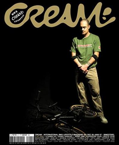 Cream bmx #12 - mai juin 2005 Interview Christophe "Jaco" Jaquemard. Interview Justin Miller. L'association Clermontoise des frères Das Neves. La scène flat de Lausanne. 8 pages signées Manu Sanz sur la dernière Metro Jam de Toronto. 5 pages encore signées maître Sanz sur la Braun Trail People Jam de Gilles et Blackjack. Le Ravage week end et l'avant-première de la vidéo Ravage/Carhartt. La deuxième édition du Front Brake Revolution chez Moliterno. Flash Clément Rémeau de Dijon. Hollywood Jam en direct de Californie. Quête du Spot "assistée par ordinateur" d'Eric Chancelier. Reportage en exclu sur l'avant-première du film de Mark Eaton "Joe Kid And A Sting Ray" ou l'histoire du BMX au cinéma ! Interview de Didier Super, par Thomas Caillard notre envoyé spécial dans l'impitoyable milieu du show business. Gros dossier pour tout savoir sur le sponsoring, avec ce qu'il faut faire et ne pas faire pour passer dans Cream: interviews riders, team managers, distributeurs, sponsors... Petit report sur la 430 House par Yasuyuki. Un bon petit BMX Made sur Odyssey avec son team manager Jim Bauer. Le Shutter du photographe italien Olaf Pignataro. L'inévitable vélo du pro, cette fois c'est au tour de Markus Wilke. Et bien-sûr nos nouvelles fraîches, notre agenda, notre guide des parks, chroniques musique et vidéos, la gazette, le fameux concours photo, etc, etc... Sortie prévue dans les meilleures crèmeries à partir du 5 mai. Bart de Jong, www.fatbmx.com, july 2005: Entreprise Mexicos put together one big issue with 132 pages. The pages are slightly bigger which makes the photos (of Manu Sanz) look even better. Jay Miron mentioned that he thinks Cream is the best BMX magazine out there at the moment and when Jay says something like that, it means something. He wouldn't say that about anything that is rubbish. Cream is (in) French but it has some English text in it. The UK text in issue 12 contains the Editorial, Jim Bauer interview, Hollywood flatland jam, Ravage weekend, Dossier Le Sponsoring, Justin Miller interview, trail people jam, Metro jam, Olaf Pignataro photo section/interview, the Circle Jam, 430 Ninja House report, Joe Kid on a Stingray video premiere report and a FBR repo. If you consider that next to these French/English articles there is plenty more for the eye, there is no reason not to look into Cream. |