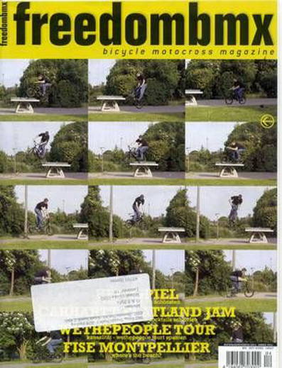 | Bart de Jong, www.fatbmx.com, 2002: Germany has one BMX magazine and that's FreedomBMX. It has been that way for a while. To me it looks like there is not much progression in the 'zine at the moment. A lot of issues look the same and the layout is pretty square (literally). It sure has its own style like this but maybe I don't like that style that much. Might be a personal thing. On a positive note, Freedom is everywhere, don't matter if it's a contest in Germany, France, USA, Holland or England, Kay, Klaus, Thomas or Axel will be there to shoot some pictures and make a report. The October/November issue has 84 pages of full colour freestyle stuff with lots of photo's from this year's world's in Cologne. I would like for Freedom to step it up a few notches; Freedom, we need some spectacular pictures, we need shocking news, we want some action, we could use an item to shock the German freestyle scene, we need more FLAMES! | |